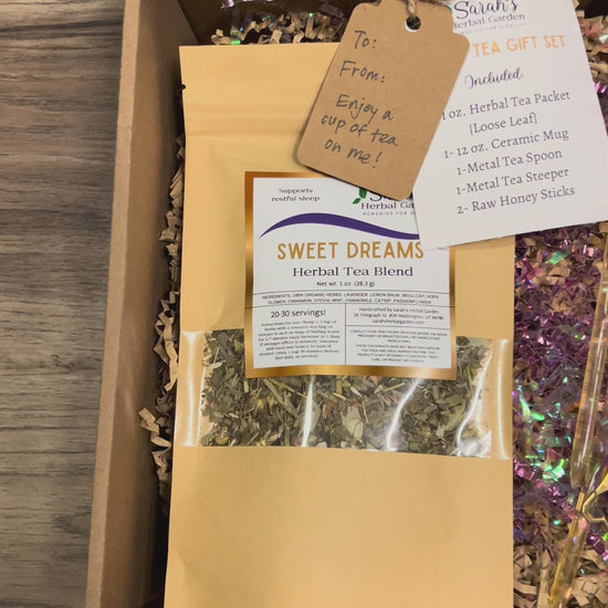 - Choose 1 of 3 herbal tea options: Girls Best Friend Herbal Tea Blend, Calm Bomb, or Sweet Dreams -Net Weight: 1 oz (28.3g)